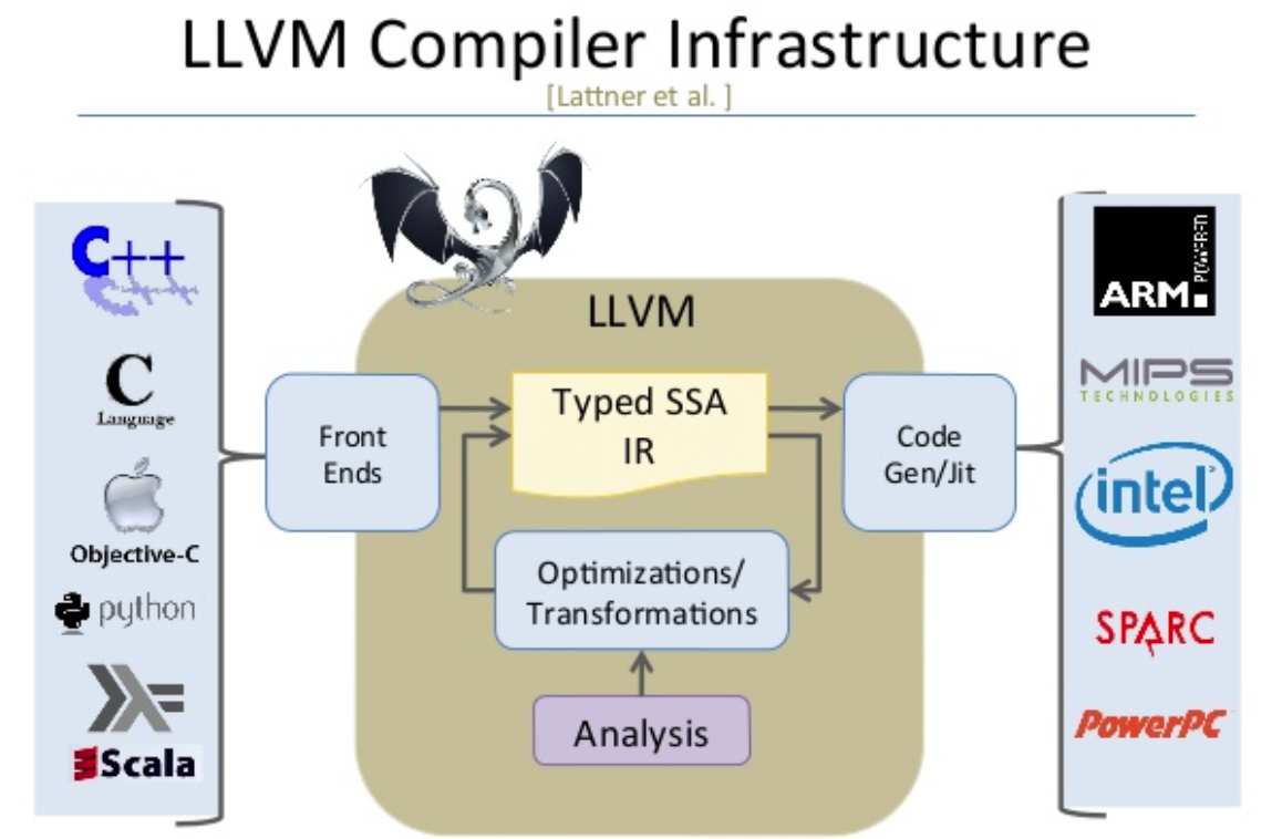 LLVM은 프로젝트의 이름으로 프로그램의 작성 언어와 관계없이 최적화를 쉽게 구현할 수 있도록 구성되어있는 컴파일러이자 툴킷이다.