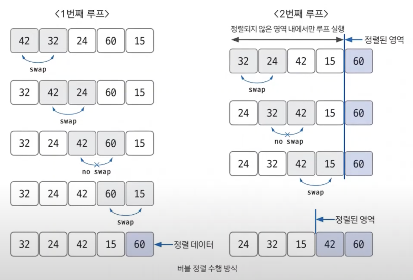 특정한 루프의 전체 영역에서 swap이 한 번도 발생하지 않았다는 것은 그 영역 뒤에 있는 데이터가 모두 정렬되었다는 뜻이다.
